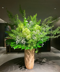 ホテルのロビーやお店やオフィスのエントランスに飾るお花は見る人を和ませたり、明るいイメージを与えてくれます。